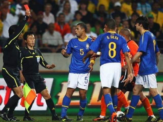天赋不够,那就狠劲来凑。既然在技术上成不了艺术家,那就身体上当个破坏家。梅洛把所有的精力都投入到了防守和对抗上,他的信条简单粗暴:球可以过去,人必须留下!于是,一个球风跟巴西足球八字不合的打手型后腰,就这么横空出世了。他铲球的凶猛程度,让你怀疑他不是来踢球的,而是来收割对手脚踝的。